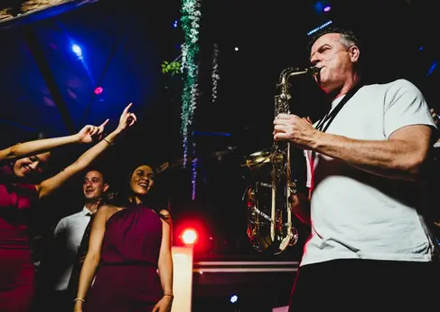 Durante la fiesta, el saxofón puede acompañar al DJ o a la música ambiente, creando un espectáculo dinámico que anima a todos los invitados.